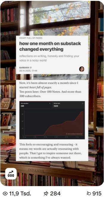 The early readers are the foundation. They believe in you before there are big numbers or obvious success. That deserves attention. There are so many people whose words stayed with me. Who encouraged me when I needed it. Thank you for being here!