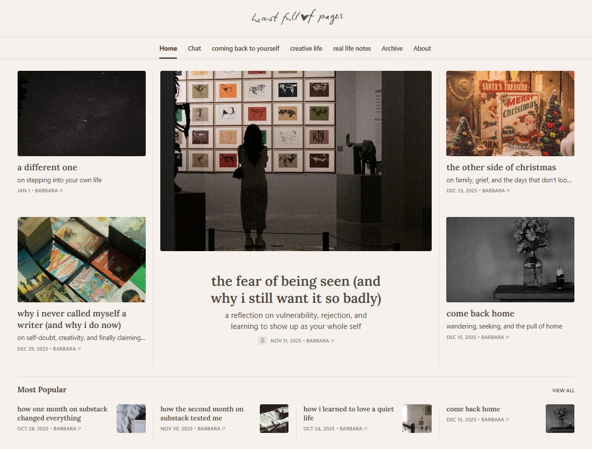 I love designing and adjusting visuals, and I am a little limited by how much you can customize a Substack homepage. Still, I did everything I could. A header, a logo, sections that highlight specific posts. I wanted it to feel like me and hopefully welcoming to anyone who lands there. Trust grows through consistency, and a coherent visual identity helps with that.
